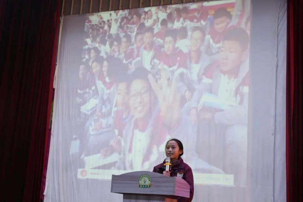 ~ 本次活动以《红星照耀中国》读后感分享为主题,共有12位同学参与角逐。活动伊始,大合唱《祖国不会忘记》和《红星歌》的精彩表演让同学们激动不已,接着在两位小主持人的热情开场与介绍下,比赛正式拉开帷幕。来自12个班级的选手们依次上台演讲,一句句铿锵有力的赞歌,一篇篇慷慨激昂的文字,一次次打破时空的桎梏,让我们仿佛置身于那个特殊年代,见证着一位位英雄前仆后继,坚守信念,浴血奋战,谱写出新中国历史上一曲曲华章。
