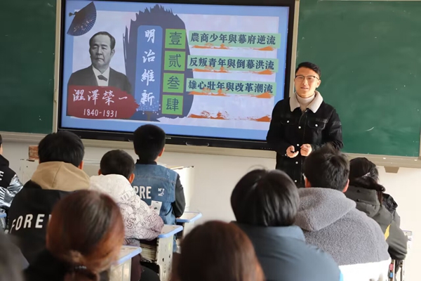 ~ 启动仪式后,教研室的领导和兄弟学校历史老师深入课堂。何善攀老师上了一节九年级历史课《明治维新》。