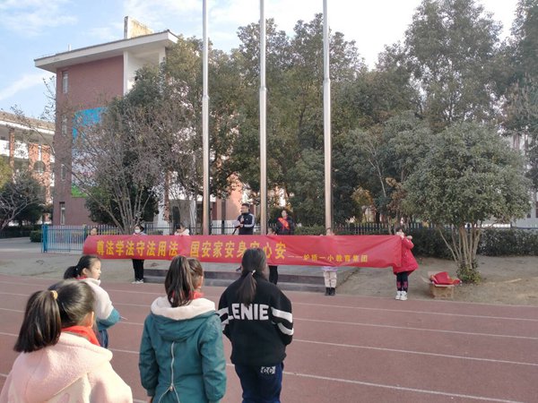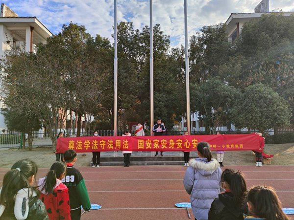 ~ 为引导学生树立法制意识,增强法制观念,自觉维护法律尊严,12月4日,定远县炉桥镇第一小学教育集团以“中国法制宣传日”来临为契机,开展了法制教育国旗下讲话活动。