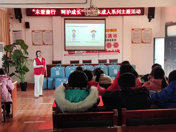 ~ 上午,在界牌学校阶梯教室,志愿者们给在座的贫困家庭儿童开展了三场知识讲座。分别为《未成年人保护法》知识宣传、青少年心理健康讲座和预防性侵安全知识讲座。宣讲人结合真实案例对《未成年人保护法》进行了解读,让孩子们进一步明白了自己的权利和义务。心理健康教育讲座环节,志愿者用寓教于乐、游戏互动的方式阐述心理教育知识,引导学生学会自我调适,减轻学习、生活压力,预防心理问题的发生。在防性侵讲座中,志愿者们告诉学生如何识别坏人、拒绝诱惑,告诫女孩子要注意保护隐私部位,遇到侵犯要机智勇敢地求助。