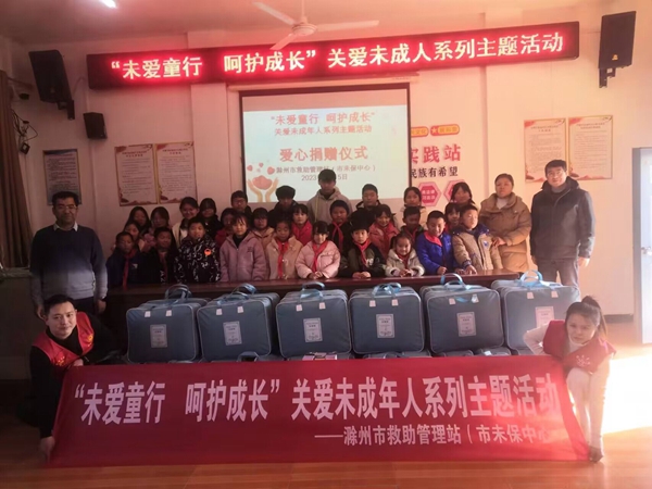 ~ 12月5日,定远县界牌学校迎来滁州市救助管理站(市未保中心)和滁州市民政局的志愿者们,他们到校开展了主题为“未爱童行,呵护成长” 的关爱未成年人活动,为31名困境儿童送来了关怀与温暖。