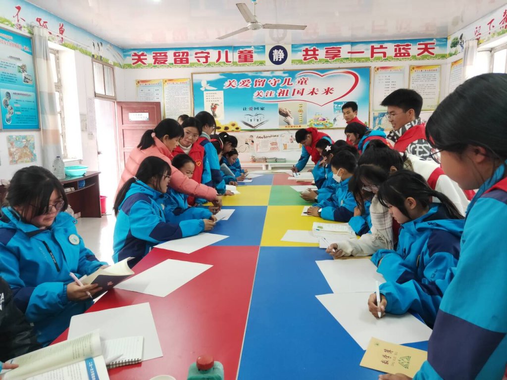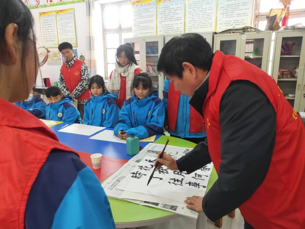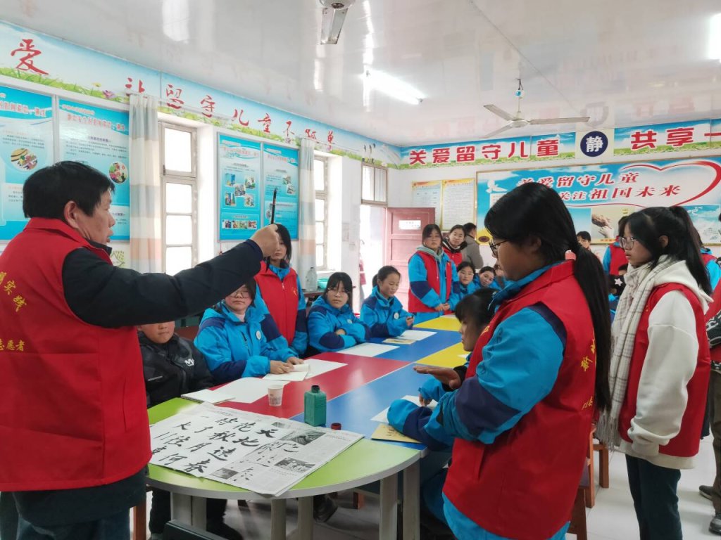 ~ 校园里,忙碌穿梭的志愿者们成为了最靓丽的一道风景线,他们三五成群,分工合作,仔细地清洗校园的橱窗、文化墙展板,那一抹抹志愿红在初冬暖阳的映衬下,更加光彩熠熠。留守儿童室内,党团志愿者们耐心为留守儿童指导讲解书法,并与之结对帮扶,为其辅导功课,讲析难题、错题,他们用一颗颗赤诚之心关爱善待每一位留守儿童,活动现场,温馨感人,大家热情友好相助,让每一位留守儿童感受到了学校大家庭的温暖。