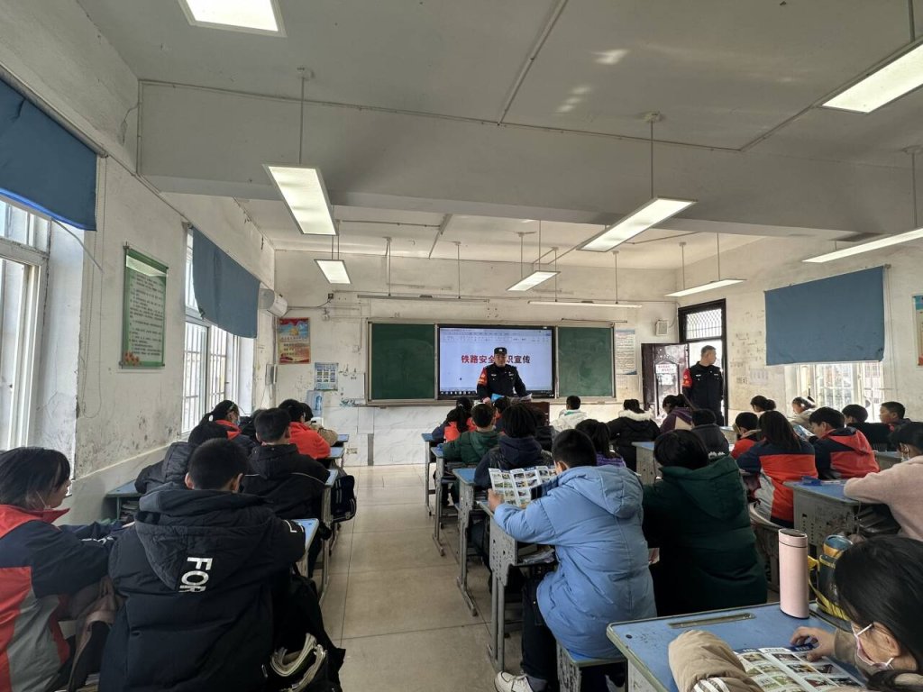 宣讲员还结合生活中的典型案例,着重讲解铁路交通安全的注意事项,引导同学们遵守铁路交通法规,不在铁路沿线玩耍、不跨越警戒线、不攀爬列车、不做损坏铁路设施设备等不安全行为。共同创造良好的铁路治安环境。同学们全程认真倾听、积极参与。
