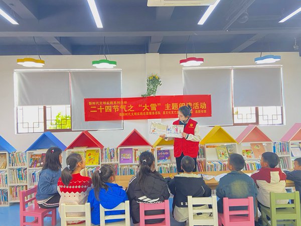 ~ 当一年之中太阳到达黄经255度时,斗指壬,这年冬天的第三个节气——大雪就来到了。为了让青少年感受中华传统文化,了解大雪节气传统习俗,定远县图书馆于12月9日组织开展了“二十四节气之‘大雪’主题阅读活动”,通过阅读与读者一起了解自然节气知识、传承传统文化。