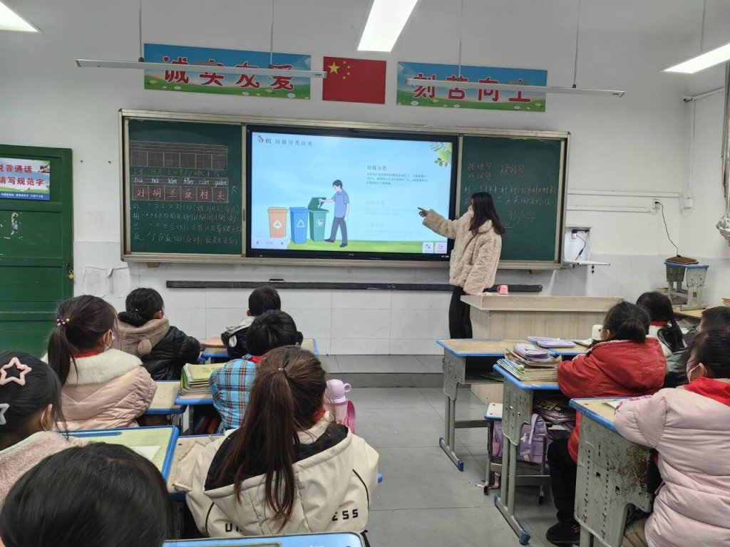 ~ 活动中,老师们用生动的图片向学生阐述了垃圾分类的概念、意义和具体方法,帮助学生深入了解哪些是可回收垃圾、厨余垃圾、有害垃圾和其他垃圾。各班通过PPT展示、观看视频、分组讨论等不同形式开展活动,让“垃圾分类,回收利用废旧物品,节约资源,保护环境”的意识扎根于每个学生的心中。