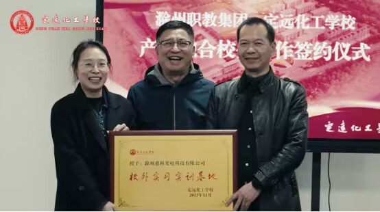 ~ 本次签约授牌仪式的成功举行,必将进一步推进定远化工学校校企合作走向深入,在应用型人才培养方面迈出更加坚实的一步,同时也是学校践行“提升学校办学层次,服务经济社会发展”办学方向的又一个成果。在未来的滁州区域经济发展中,必将出现越来越多的“化工力量”。(图文:姬杰、杨桐;初审:孙辉;复审:梁斌;终审:许孝峰)