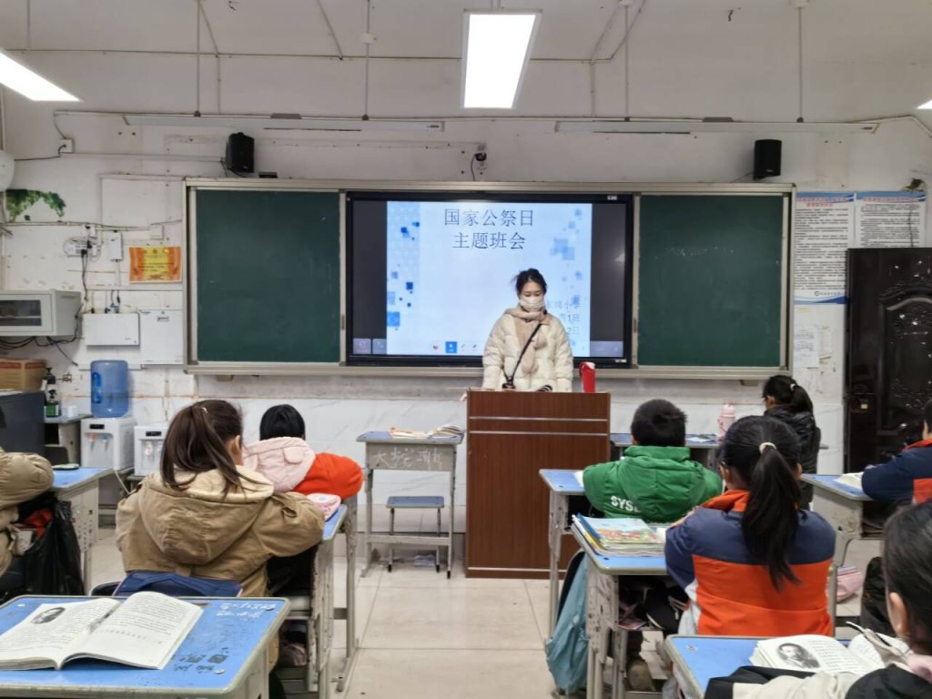 12月13日,定远县年家岗小学召开“国家公祭日”主题班队会。