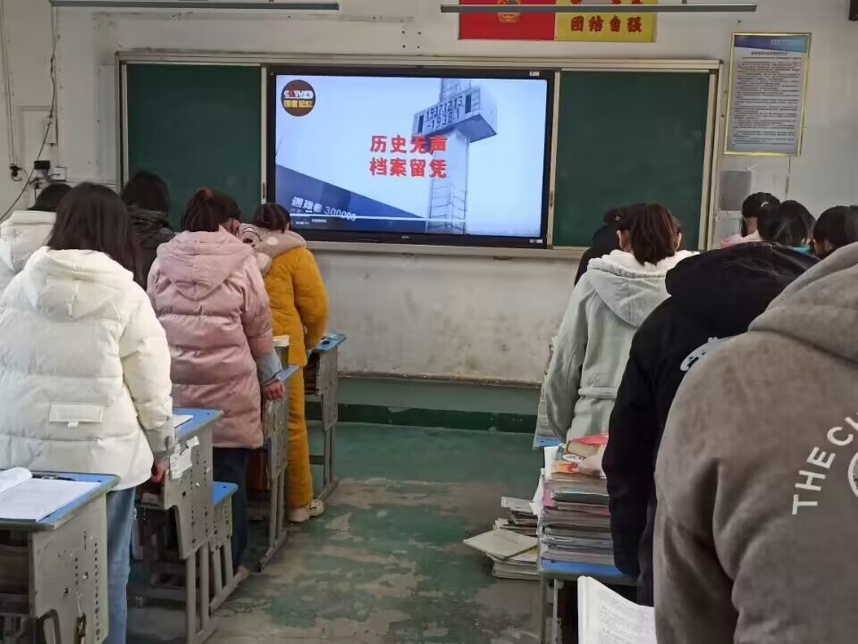 ~ 活动要求各班主任利用早自习组织学生集中观看国家公祭日宣传教育视频;同时在班级群组织宣传,扫二维码参加网上公祭活动;在10时整的宏亮而深沉的防空警报声中,集体默哀3分钟。各班主任向全体学生介绍了国家公祭日的由来,提醒同学们年复一年纪念南京大屠杀遇难同胞,不仅仅是为了纪念,更是要我们每一个人始终铭记历史、勿忘国耻、奋发图强、振兴中华!