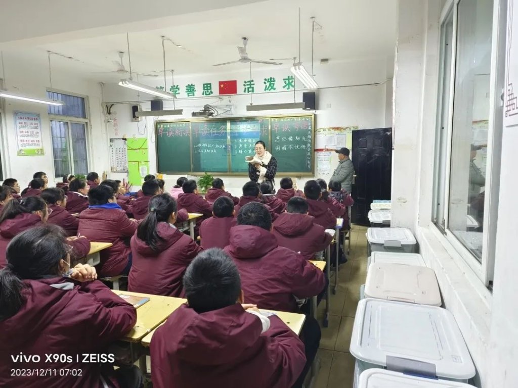 ~ 此次活动在激情早读中拉开序幕,教室里窗明几净,黑板上早读目标明确。激情早读,书声琅琅,学生们坐姿端正,声音洪亮,新的一天充满了无穷的斗志和精力!