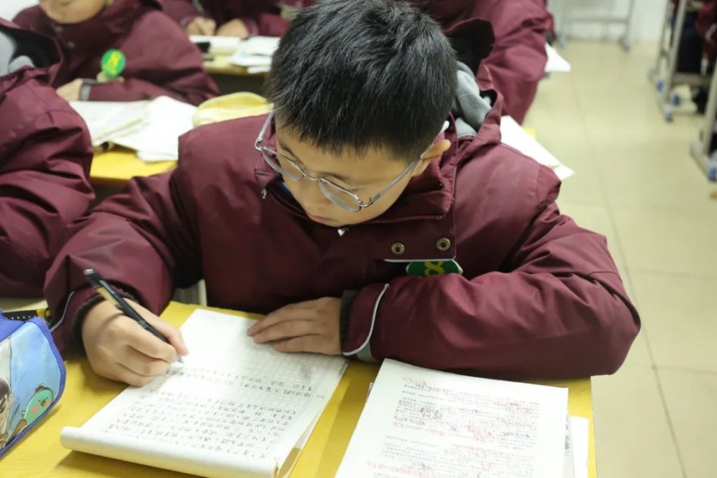 ~ 早读过后,孩子们立即静下心来,一笔一划练字。无论是语文还是英语,老师都统一了练字的标准,让孩子们在规范要求中做到写规范字。练字活动提高了学生的书写水平和对美观书写的认识,让墨香浸染校园。