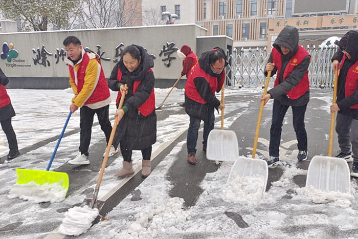 ~ 以雪为令,党员先行。为保障雪天校园道路通畅,维护师生安全。根据该校党总支统一部署,党员教师纷纷手持铁锹、扫帚、除雪铲等工具,积极投入到扫雪行动中来。成为校园中又一道靓丽的风景,更为师生的活动和出行安全提供了有力的保证。