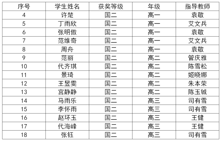 全国二等奖获得者