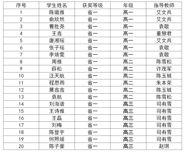 2023省级获奖学生名单省级一等奖