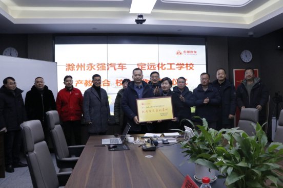 ~ 随后,相关领导在穆松带领下,来到滁州职教集团成员单位——滁州永强汽车制造有限公司,参观了企业展厅,并在公司会议室召开座谈会。座谈会后,在与会人员的见证下,孙辉与永强汽车制造公司副总裁陈效玮代表校企双方签订了实习实训基地共建协议。许孝峰为永强汽车制造有限公司作为学校校外实习实训基地授牌。(图文:韩国兵;初审:高圣姬;复审:梁斌;终审:许孝峰)