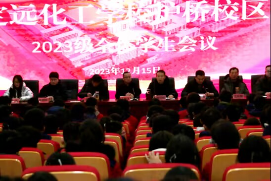 ~ 为传达学校办学方针,激发学生学习热情,丰富校园生活,12月15日下午,定远化工学校炉桥校区在多功能报告厅召开2023级全体学生会议。校党委副书记、校长王传文,炉桥校区各部门负责人,2023级全体班主任及学生参加了会议,会议由2023级年级主任曹玉超主持。