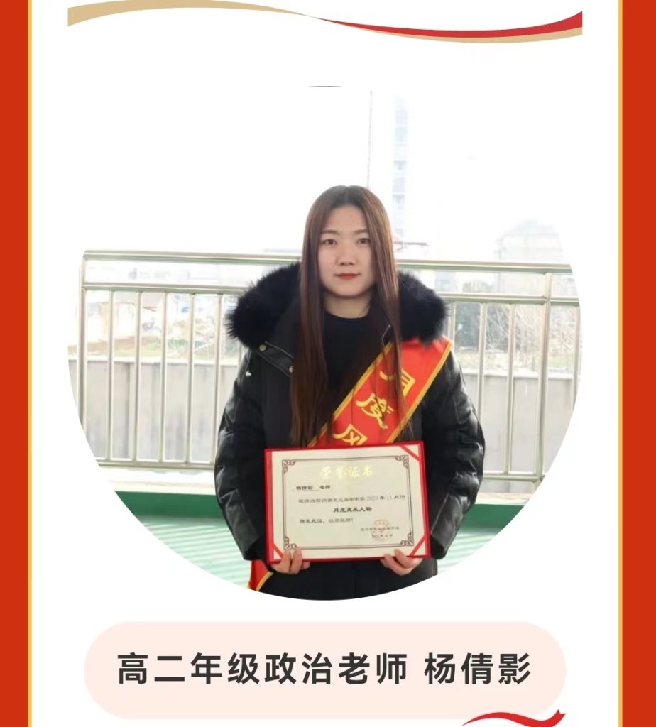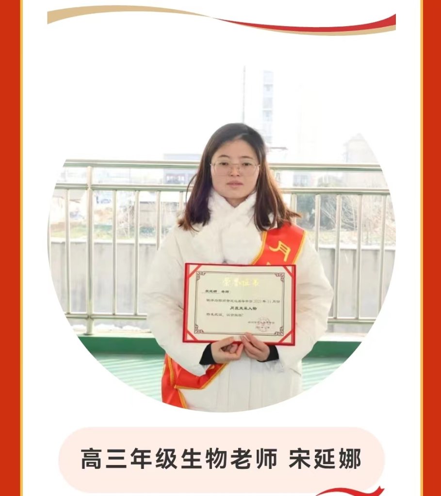 ~ 她是后起之才,是教坛新秀,四年的职业生涯,连续两年担当重任。她年轻有活力,工作认真负责,能在实践中不断提高自己的教学水平,使教学质量大大提升。用学识与热情打动了学生,用阳光与上进的心态感染了学生,用心血与爱心赢得了学生。她在自己的岗位上挥洒着青春、奉献着才华、奋斗着人生。