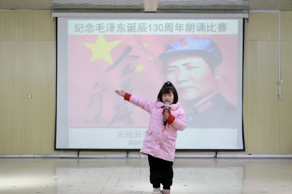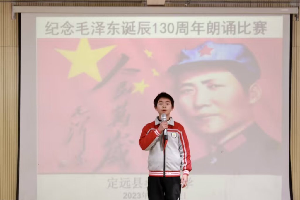 ~ 为大力弘扬爱国主义精神,颂伟人、感党恩、抒豪情、开新程,2023年12月22日,定远县桑涧小学“扬红色精神 念世纪伟人”——纪念毛泽东诞辰130周年诗歌朗诵比赛在敦行楼多功能厅隆重举行。