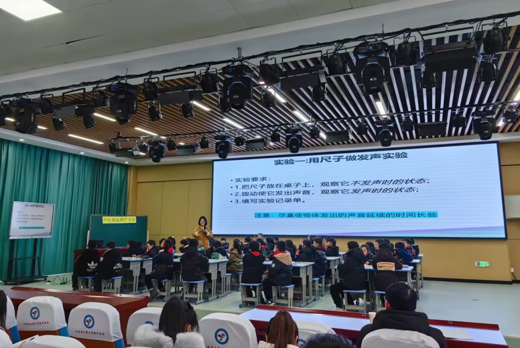 ~ 本次优质课展评采取同课异构形式展示,分别由县实验小学教育集团的王婷婷老师和永康小学教育集团的陈静老师共同执教大象版小学科学《声音是怎么产生的》。两位老师精准把握课标要求,借助课堂实验激发学生的探究热情,通过不同的教学设计,结合教师的教学特长,在小组的共同努力下认识到声音是如何产生的。