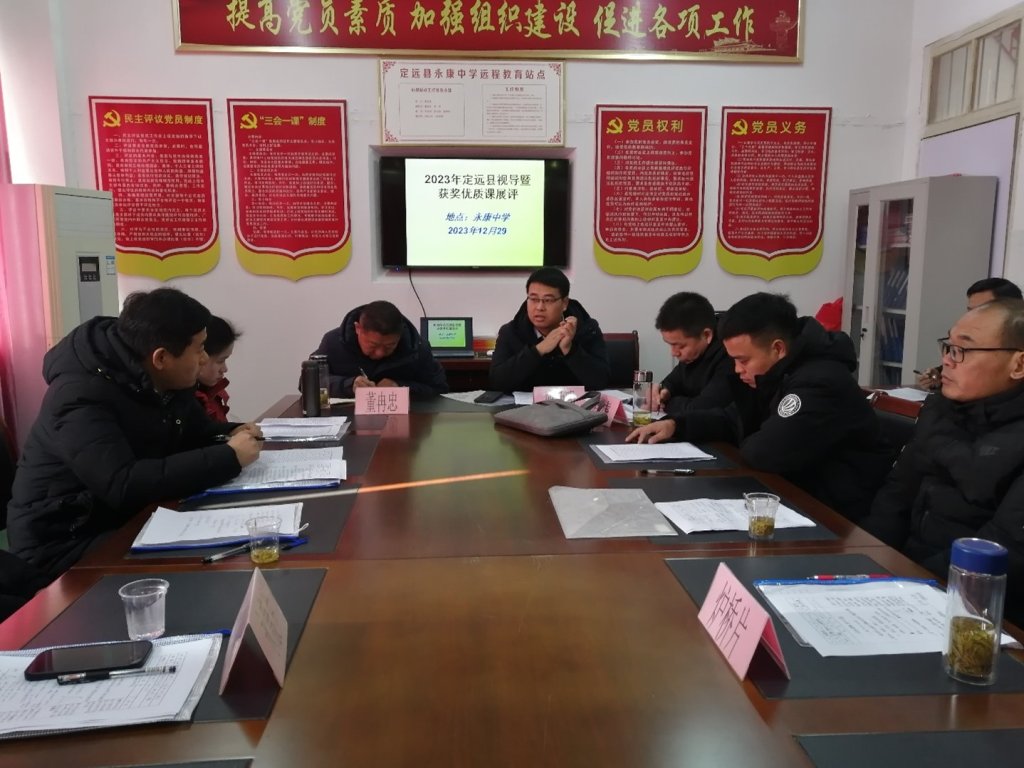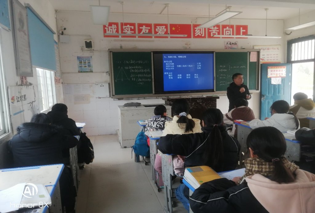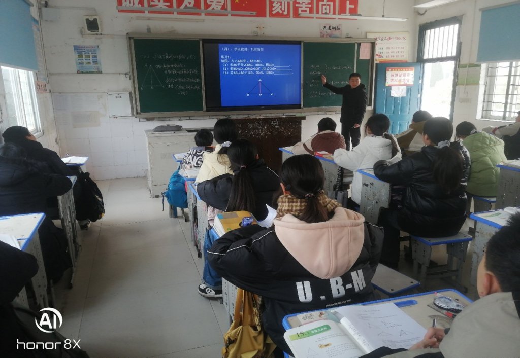 12月29日上午,定远县永康、炉桥两教研片联合开展获奖优质课展评活动在永康中学八年级一班进行。由第二初中数学组肖虎老师进行《等腰三角形性质定理2》课堂教学。两教研片八年级数学组教师参加活动。定远教体局教研室戚功明、永康中学教研分管领导董冉忠及教导主任杨世峰参会。