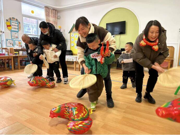 ~ 活动包括家长入园挂祈福牌、开幕式、锦囊寻宝、亲子游戏、兑换奖品和品尝美食等多个环节。整个活动中,家长和幼儿积极参与其中,自主探索、相互合作,孩子们在游戏中全力竞技,幼儿园里充满着欢声笑语。