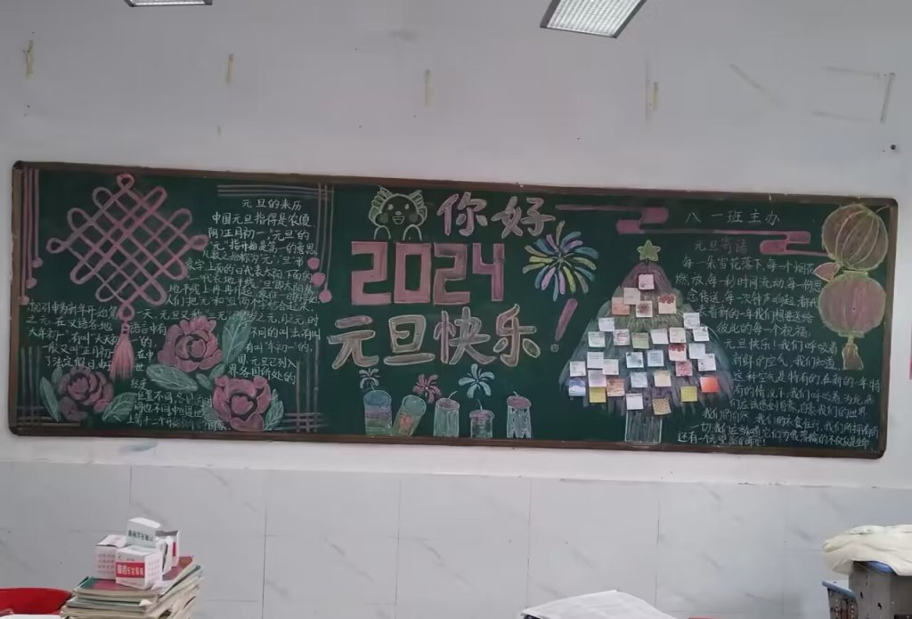 ~ 为庆祝2024年元旦的到来,营造欢乐祥和的节日氛围,推进文明校园建设,近日,定远县桑涧初中开展了“庆元旦 迎新年”黑板报评比活动。