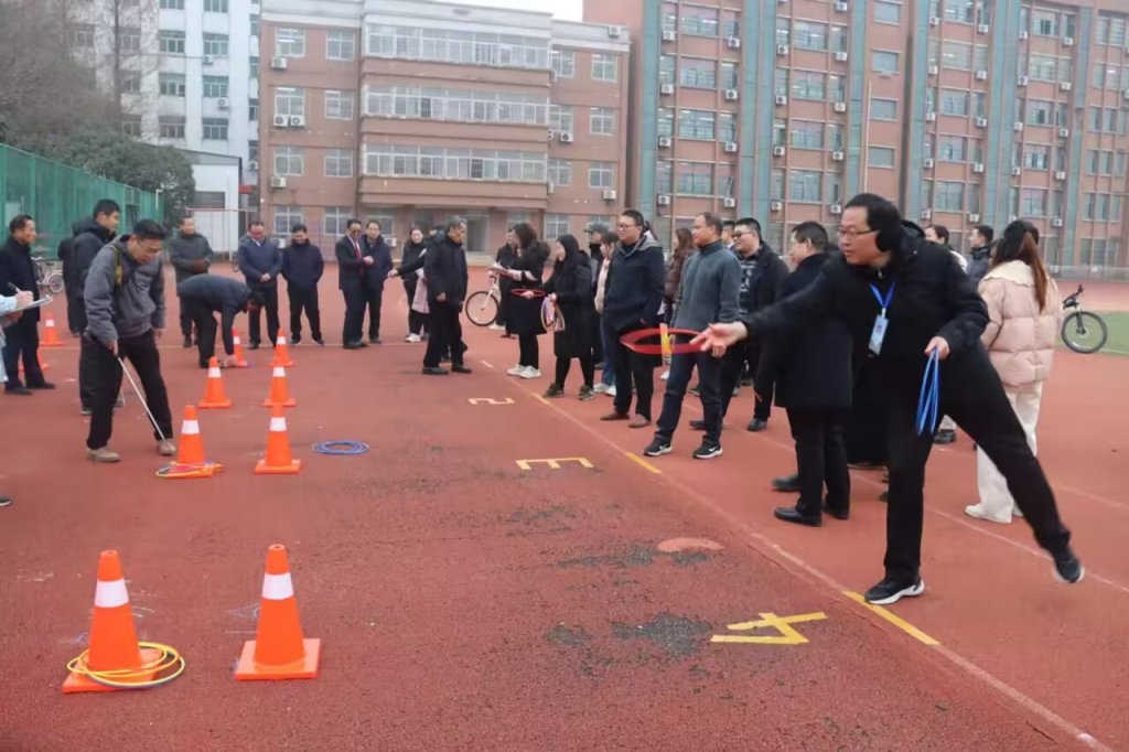 ~ 运动会共设有 “投”入热情——定点投篮、“拔”出干劲——拔河、“推”向成功——推竿绕障跑、“滚”出天地——车轮滚滚、“背”出好运——背靠背运气球、“足”出奇迹——千足侧行、“慢”享人生——自行车慢骑等八个项目。老师们秉承“友谊第一,比赛第二”的原则,积极参与各项趣味赛事,充分展示了教职工朝气蓬勃、积极向上的风采。