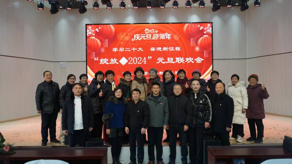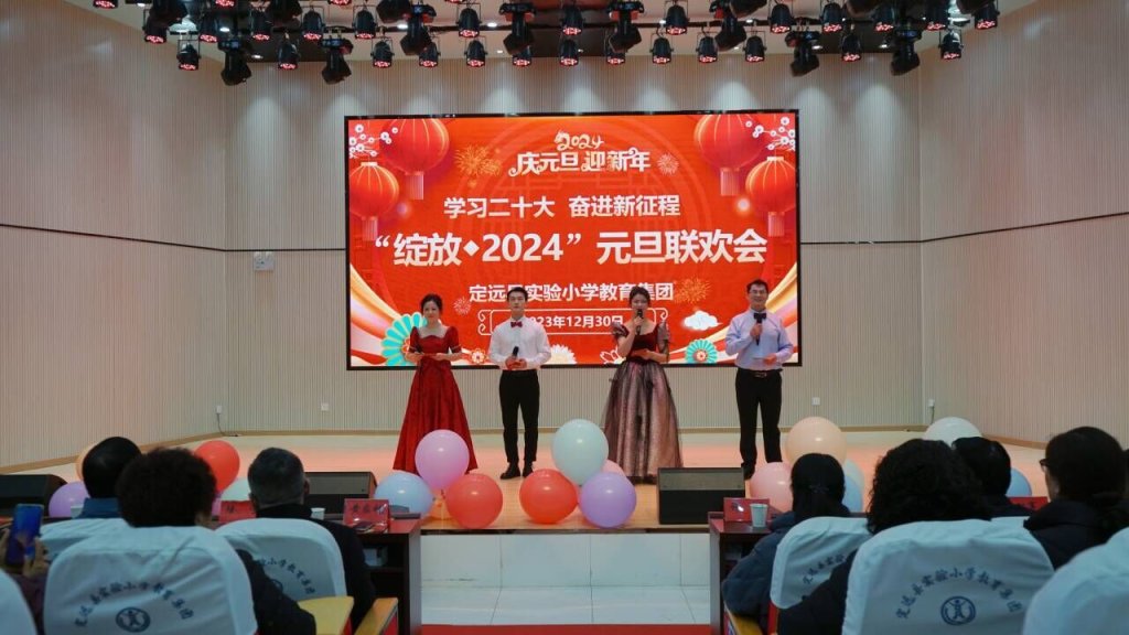 ~ 12月30日上午,定远县东兴路小学报告厅内华灯璀璨、舞步蹁跹、歌声悠扬。以“学习二十大 奋进新征程”为主题的实验小学教育集团“绽放•2024”庆元旦联欢会在此举行。集团学校全体教职员工、退休教师代表400余人欢聚一堂,载歌载舞共庆元旦佳节。