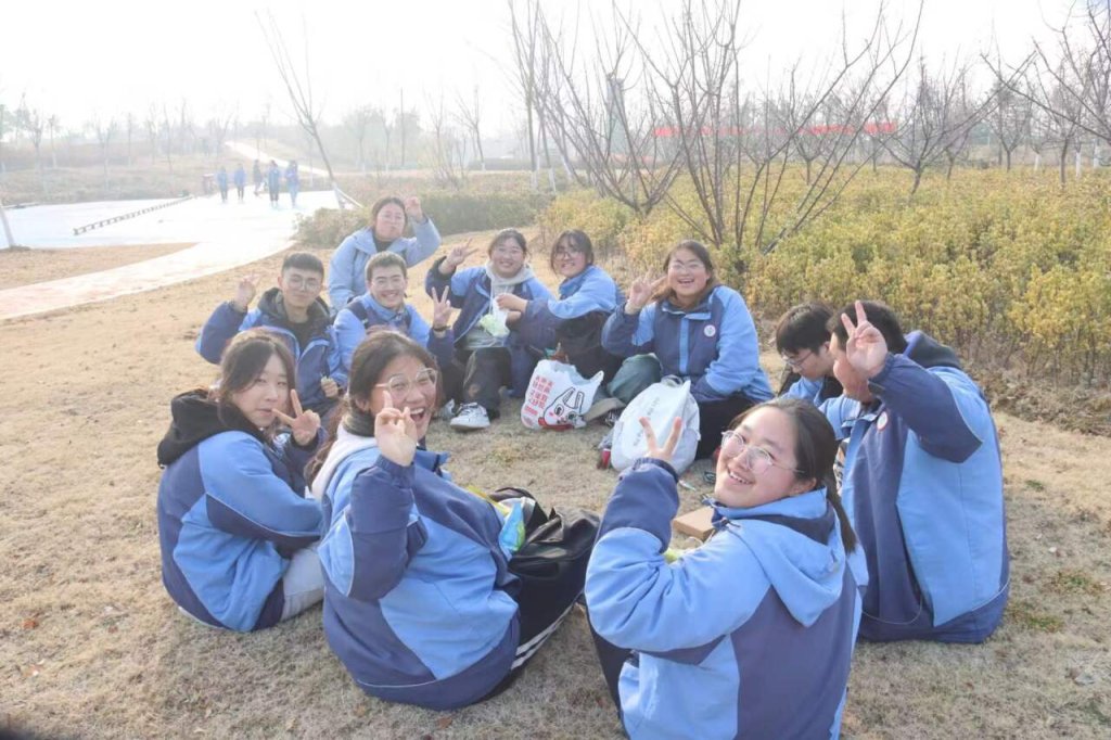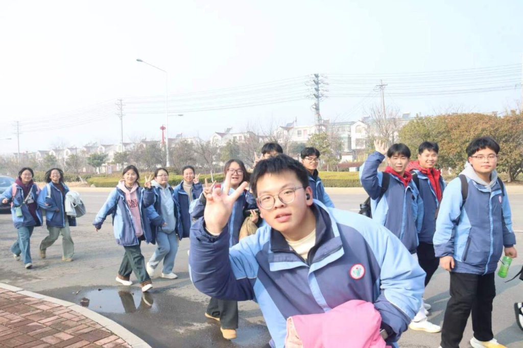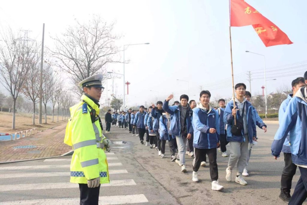 ~ 下午一点整,学校楼前广场彩旗招展、红旗飘扬,高三年级全体师生集结待命。在简短的壮行仪式后,全体师生排着整齐的队伍,浩浩荡荡向目的地进发。此次远足路线自定远三中开始,沿永康路、上海路行进,至泉坞山森林公园止,全程来回近13公里。行进过程中,同学们精神饱满,热情高涨。他们时而高唱班歌,时而高喊口号,互相鼓励,携手同行。