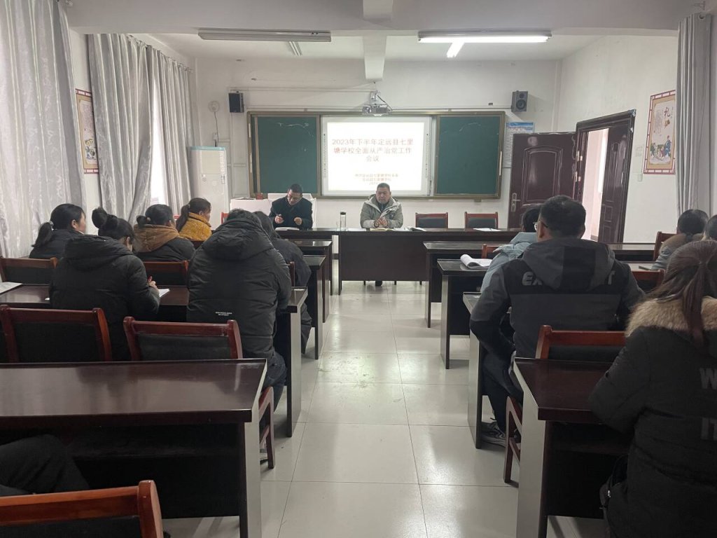 ~ 1月3日上午,定远县七里塘学校在三楼会议室召开2023年下半年全面从严治党专题工作会议。会议由校党支部书记、校长沈祖辉主持,全体教师参加会议。
