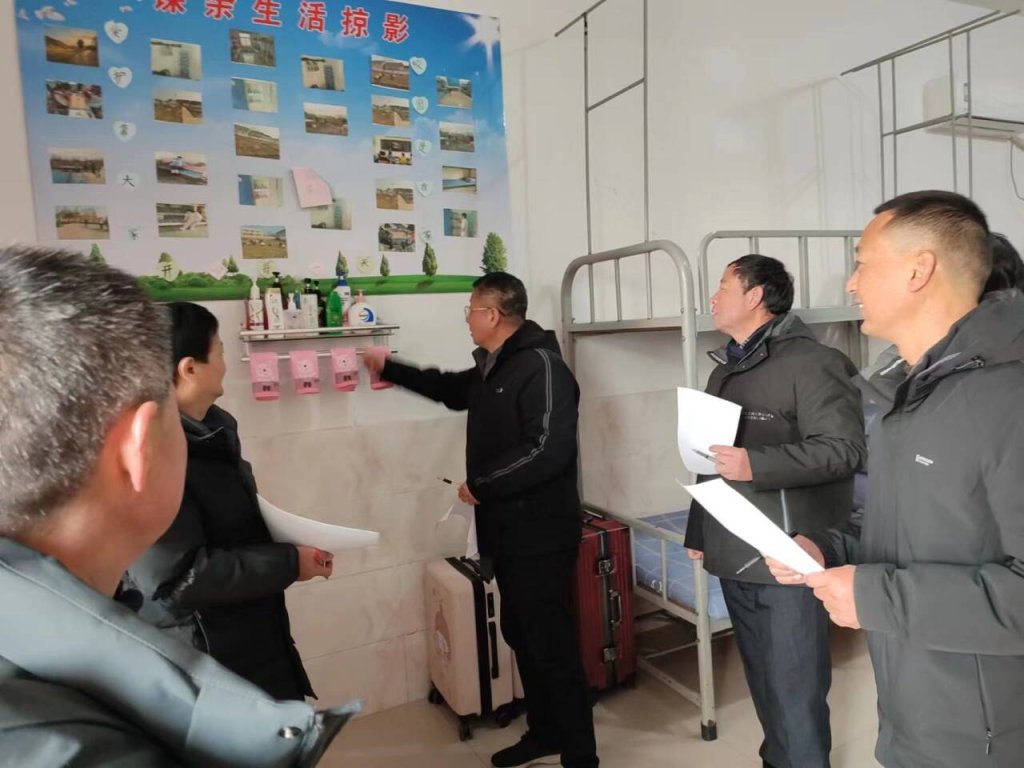 ~ 为了加强学生宿舍管理,提高学生自主管理能力,营造文明、整洁、舒适的住宿环境,1月5日上午,定远县朱马学校刘继忠校长带领总务处人员及5-9年级班主任深入学生公寓开展宿舍卫生检查。