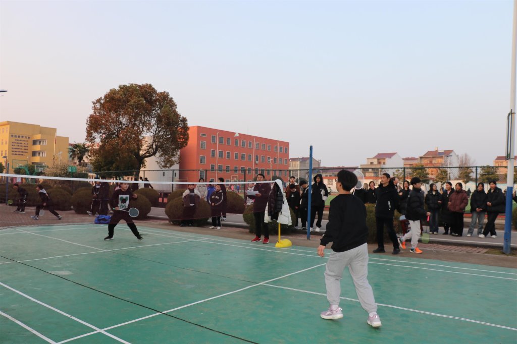 ~ 即便晚霞中寒风刺骨,也挡不住同学们对羽毛球比赛的热爱。比赛现场羽毛球在场地上空往返穿梭,参赛同学激情四射、活力十足,只见他们动作协调连贯、干脆利落,将精准发球、大力扣杀、巧妙吊球、攻防转换等各种球技展现得淋漓尽致。场下观赛的同学不时为自己的班级加油、喝彩,掌声和呐喊声不绝于耳,运动的激情将整个校园都点燃了。