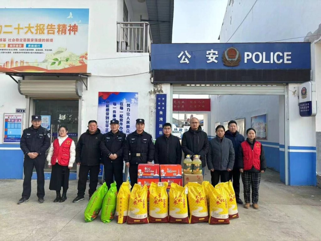 ~ 来到朱湾派出所,向公安民警们献上了米油等慰问品,表达节日的美好祝愿。慰问中,校长杨明对所有公安民警们长期以来为社会稳定所作的贡献表示衷心的感谢。慰问结束,公安民警们与学校领导合影留念,记录这一美好时刻。(图文:桂虎宁 审核:杨明)