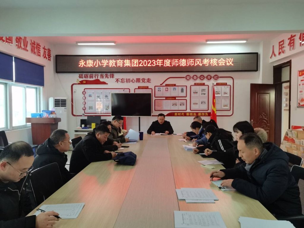 ~ 2024年1月11日,定远县永康小学教育集团召开2023年度师德师风考核专题会议,全体行政人员及年级组长参加了会议,会议由校党支部书记、校长黄海山主持。