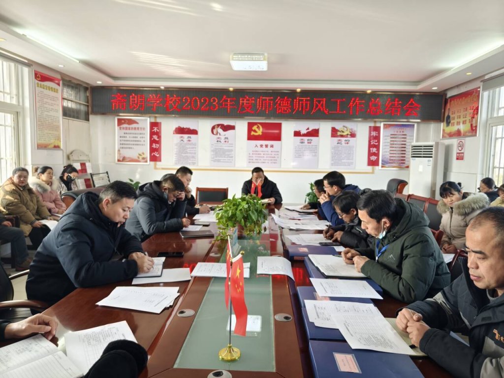身正为师,德高为范。为加强师德师风建设,进一步提升教师职业道德素养,规范教师从教行为,切实转变工作作风,努力打造一支品德高尚、爱岗敬业,让人民满意的教师队伍,2024年1月11日,定远县斋朗学校组织全体教师召开2023年度师德师风工作总结会。校领导班子成员出席本次会议。