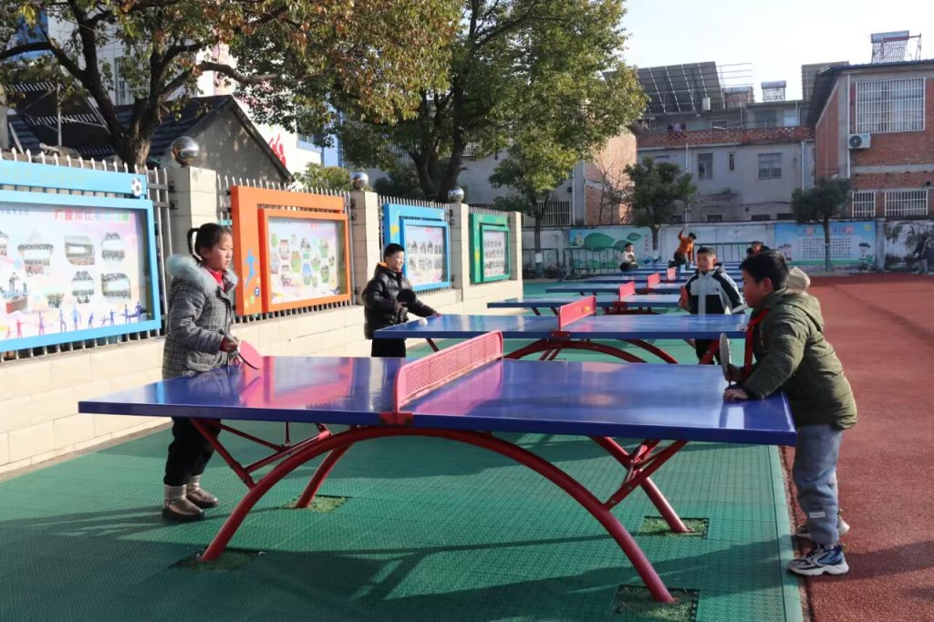 ~ 学校充分挖掘资源,添置活动器材,设置了单双杠、乒乓球桌、可升降篮球架等简便易行、喜闻乐见的活动项目,为学生多样化“课间10分钟”活动提供器材支撑。