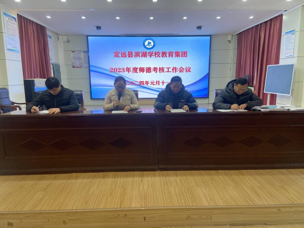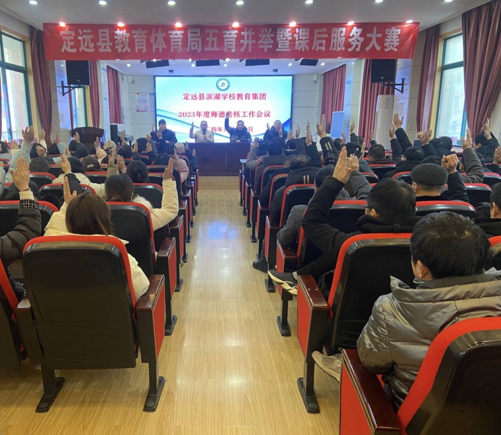 为进一步加强师德师风建设,不断提升教师的职业道德修养,增强教师责任意识和使命感,规范从教行为,2024年1月11日上午,定远县滨湖学校教育集团召开了2023年度师德师风考核工作会议。会议由集团党组织负责人、校长李永书主持,全体教职工参加。