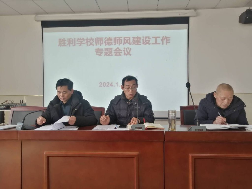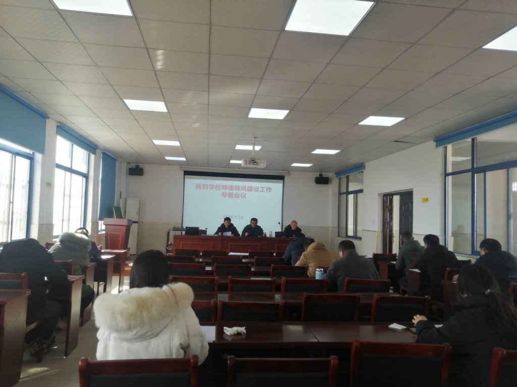~ 1月15日下午,定远县胜利学校在四楼报告厅召开师德师风考核专题会议,会议由校党支部书记、校长韩有伦主持,全体教师参会。