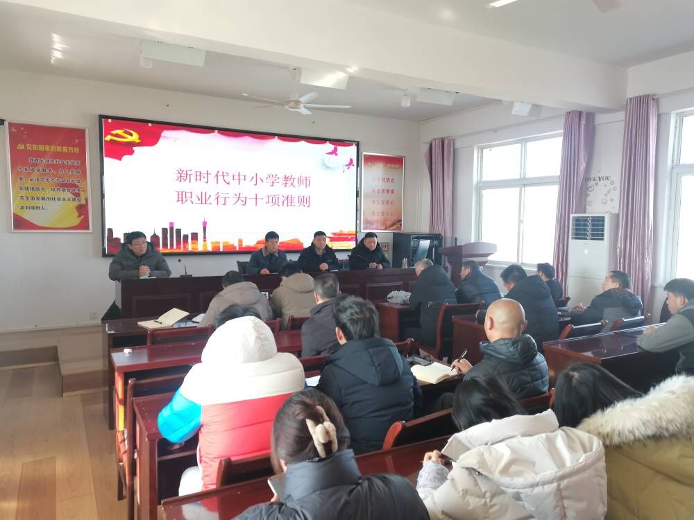 ~ 会上,学校党支部书记李四军希望全体教师明底线、知责任、不逾矩,正确使用教育惩戒,坚守立德树人初心,在爱与责任中为学生健康成长保驾护航。分管校长徐久海带领大家学习《新时代中小学教师职业行为十项准则》和《新时代幼儿园教师职业行为十项准则》,进行了师德师风警示教育。学校党支部副书记王金良布置2023年度师德师风考核相关工作,要求全体教师树牢师德红线、纪律底线,牢记为党育人、为国育才。