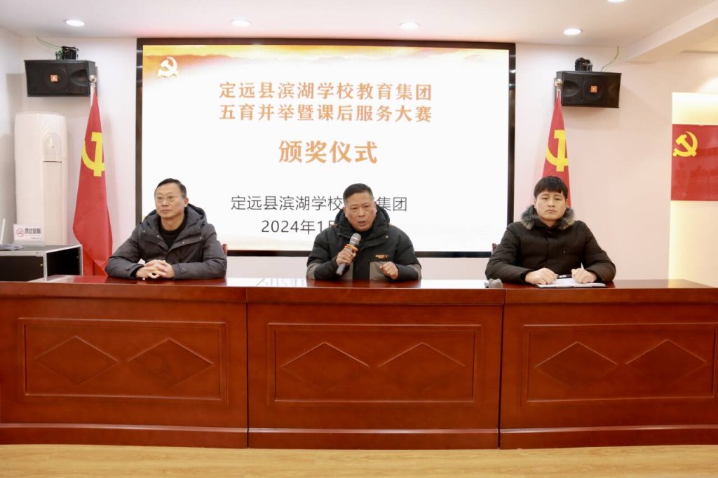 1月17日下午3:00,定远县滨湖学校教育集团在新区实验小学校区党建室召开了集团“五育并举暨课后服务颁奖仪式”。集团党组织负责人、校长李永书出席并发表了讲话。