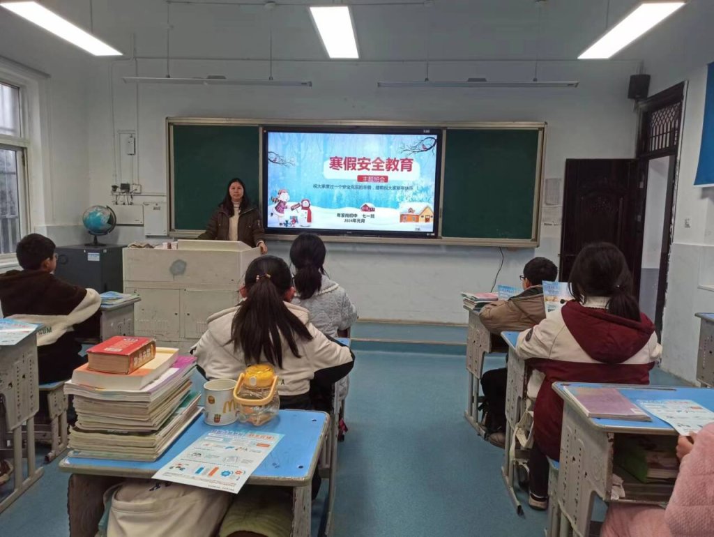 该校还通过班级微信群、QQ群推送《定远县年家岗初中2024年寒假致家长的一封信》,敦促家长主动参与对学生的寒假安全教育,以达到家校共育,共同做好学生寒假的安全教育工作。