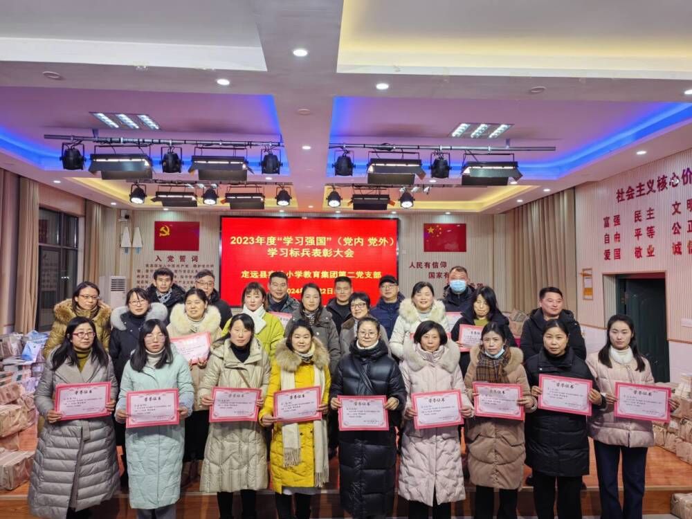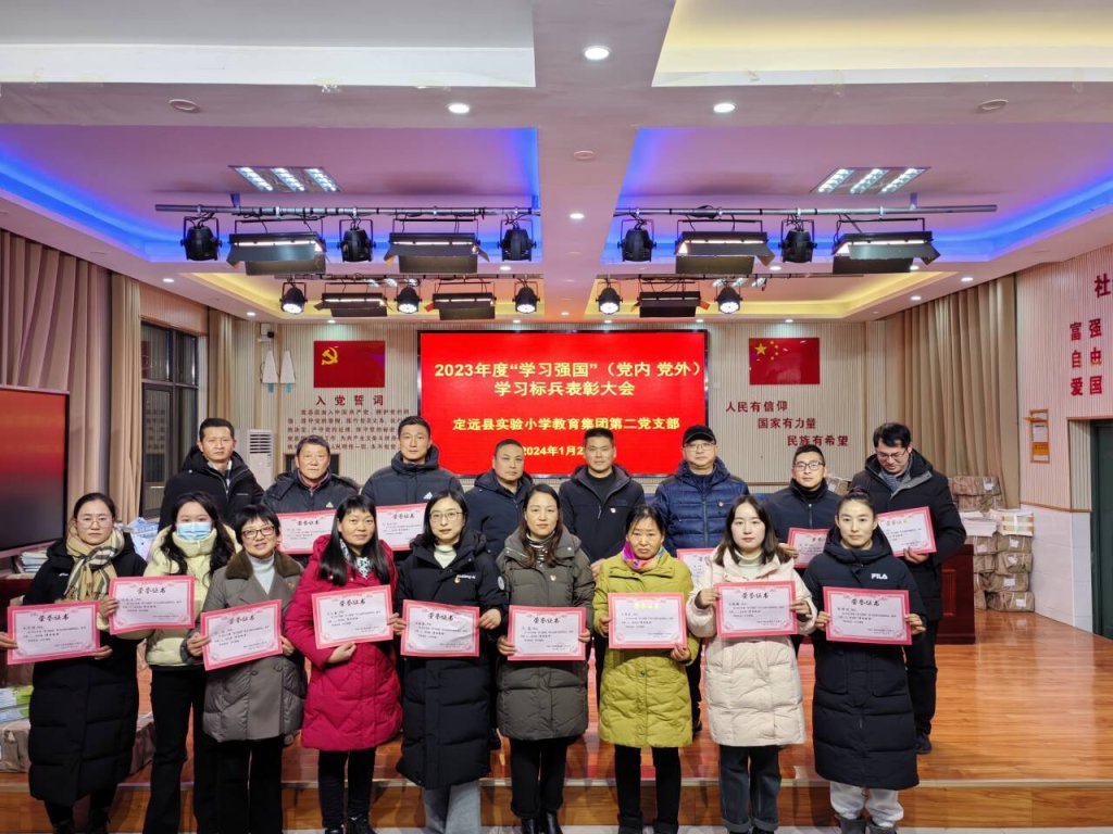~ 1月22日下午,定远县实验小学教育集团2023年度“学习强国”(党内 党外)学习标兵表彰大会在三个校区中同步举行。校党总支书记陈恩源,副书记武文松、姚明峰出席表彰大会向学习标兵颁发《荣誉证书》,并就深入持久推进“学习强国”学习活动提出要求、进行指导。总支所辖三个党支部的支部书记分别主持校区的表彰大会。全体教师在所属校区参加表彰大会。