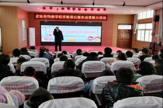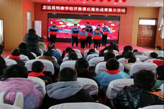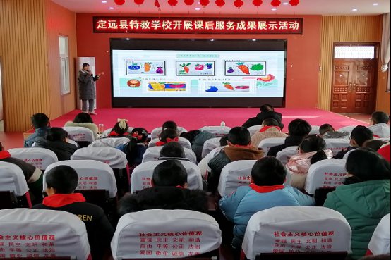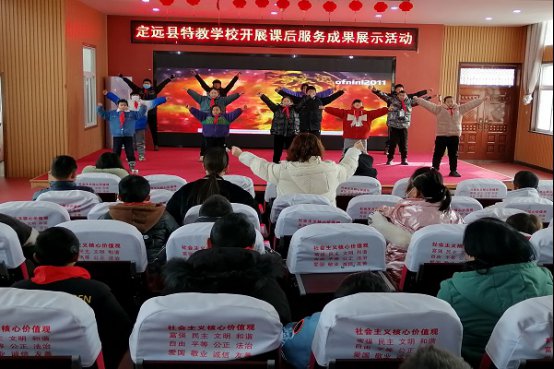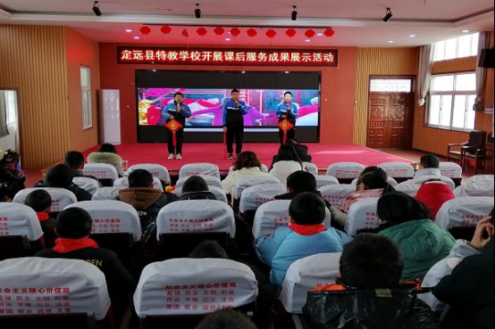为扎实推进“双减”工作,落实“五育并举”举措,展示学校课后服务特色与成果,营造家校协同育人的良好环境,2024年1月22日下午,定远县特教学校在多功能厅举行了以“多彩延时,用爱服务,助成长”为主题的课后服务成果展示活动。该校全体师生参加活动,共同见证课后服务的丰硕成果。