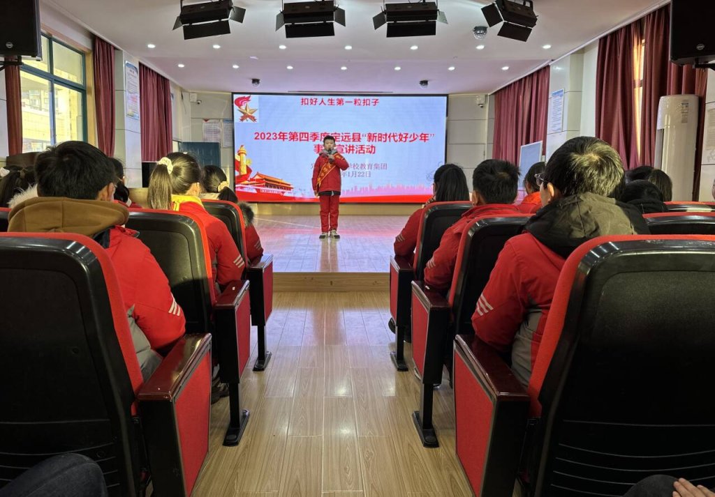 2024年1月23日,定远县滨湖学校教育集团举行了第四季度“新时代好少年”先进事迹报告会暨校级新时代好少年表彰活动,旨在表彰定远县第四季度“新时代好少年”的先进事迹,并激励更多的少先队员向他们学习。滨湖学校集团的“新时代好少年”代表齐聚一堂,共同见证这一荣耀时刻。