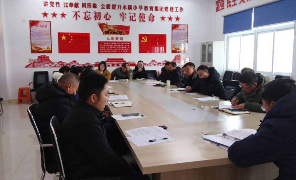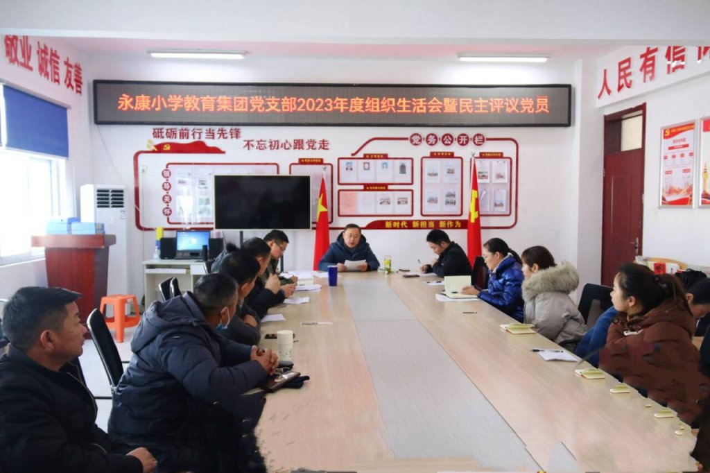 ~ 1月25日,定远县永康小学教育集团党支部召开主题教育专题组织生活会暨民主评议党员大会。会议由党支部书记、校长黄海山主持,全体在职党员参加会议。