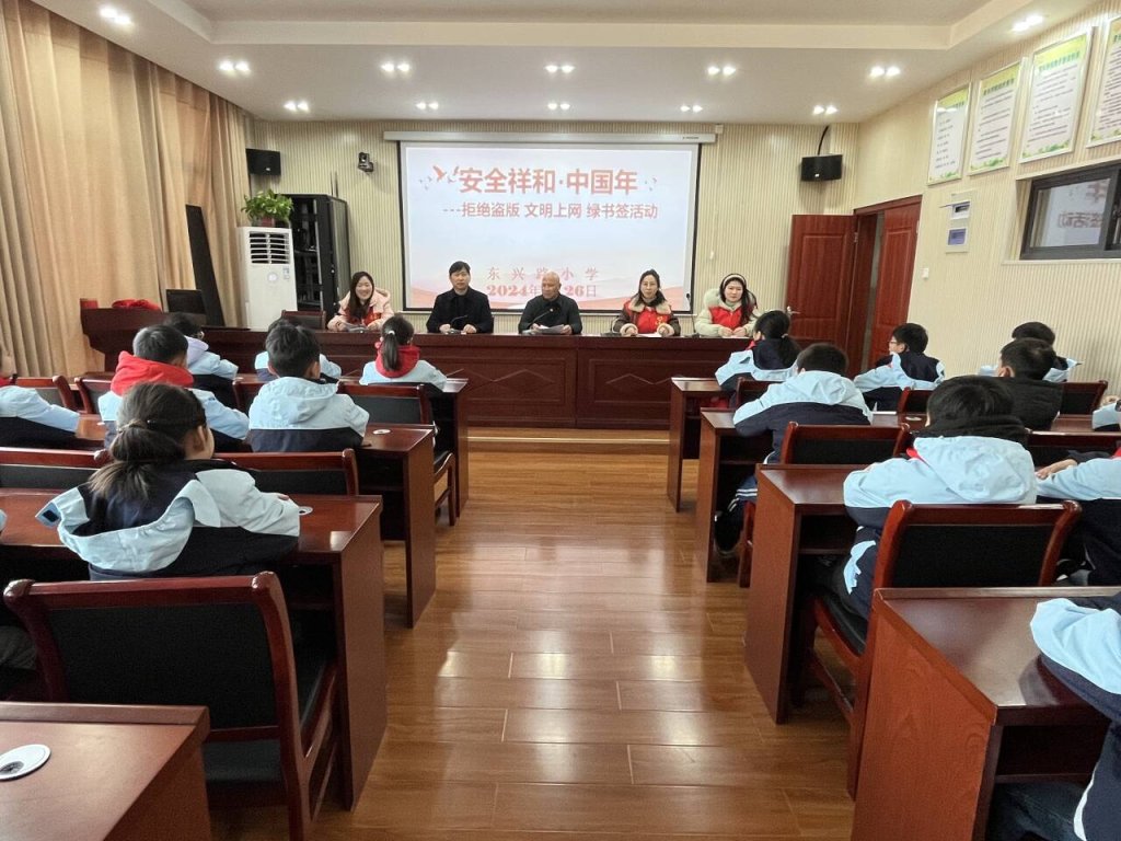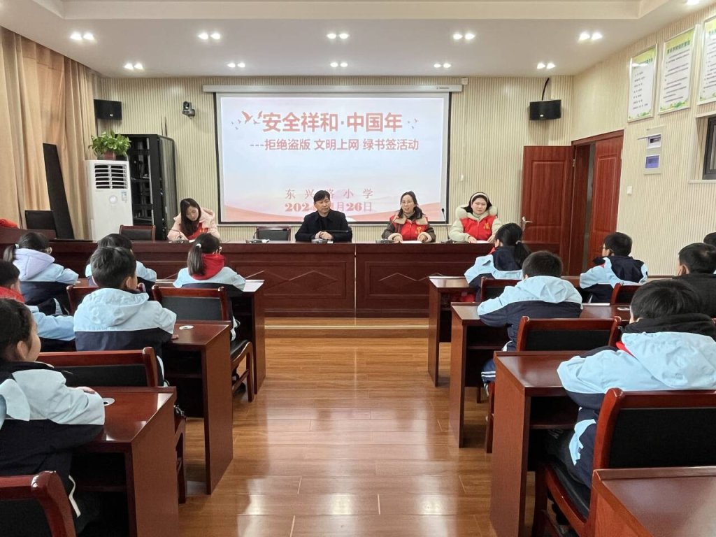 一年一度寒假到,一岁一夕迎新春,为引导青少年远离不良非法信息、提高青少年自我保护意识,过安全祥和的中国年,1月26日,定远县实验小学教育集团在东兴路小学开展“拒绝盗版、文明上网”绿书签宣讲活动,引导学生绿色阅读、文明上网,过有意义的传统佳节。