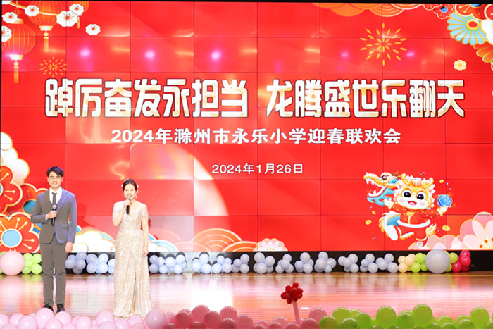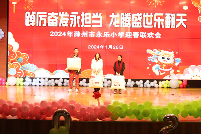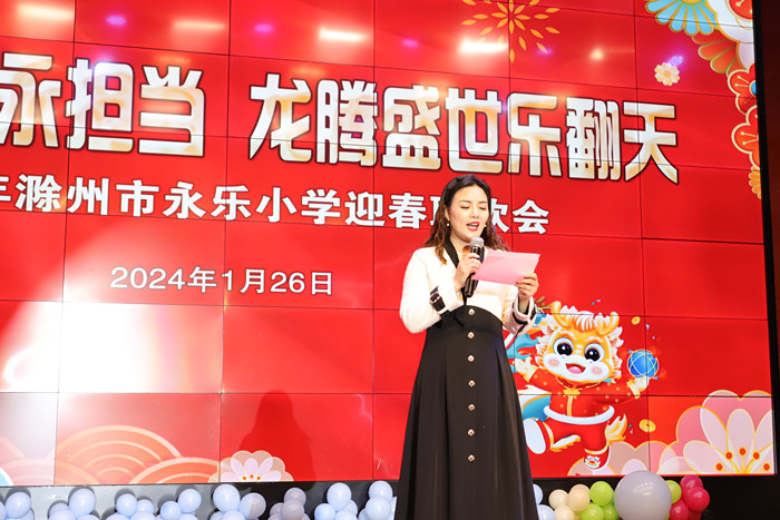 ~ 玉兔辞旧春华启,龙腾新春气象新。为充分展示永乐教师的良好精神风貌,营造奋发向上的校园文化氛围,致敬奋斗岁月,憧憬美好未来,1月26日,滁州市永乐小学全体教师欢聚一堂,张灯结彩,共迎新春。