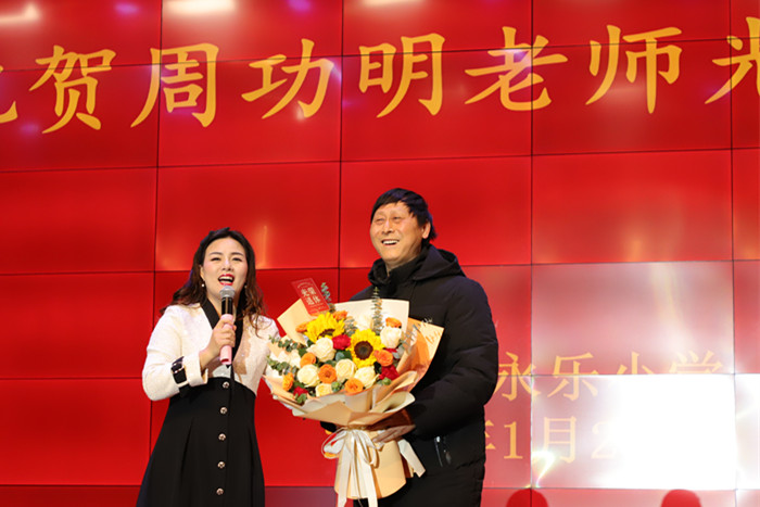 ~ 活动在一片欢声笑语中拉开了帷幕,党总支书记姚杰发表热情洋溢的新春致辞,不仅回顾了过去一年学校的成就,对教师们的辛勤付出表示了衷心的感谢,还对新的一年寄予了美好的期望。接着,为光荣退休的周功明老师举行了温馨而又隆重的退休仪式,姚杰为周老师献上鲜花并送上亲切的祝福,希望周老师退休后继续发挥余热,一如既往地关心学校发展,积极建言献策。