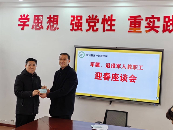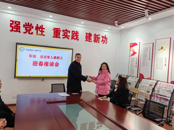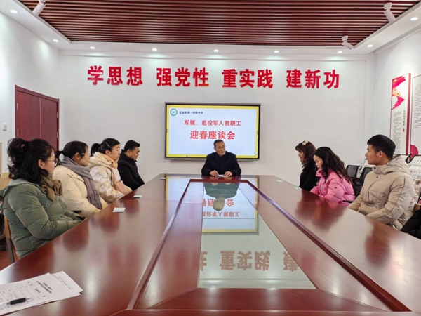 ~ 为进一步做好拥军优属工作,1月28日,定远县第一初级中学党支部在双塘中学校区党员活动室召开了本校退役军人及军属职工座谈会。该校党支部书记、校长张书清和3名退役军人、6位军属教师参加了座谈会。