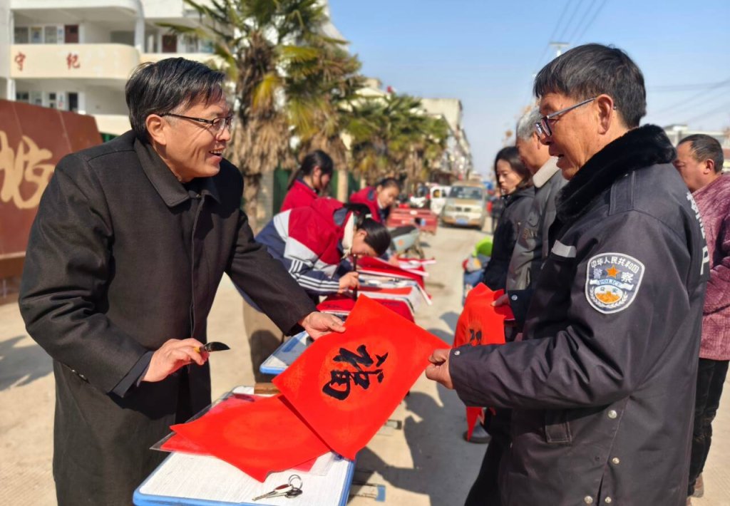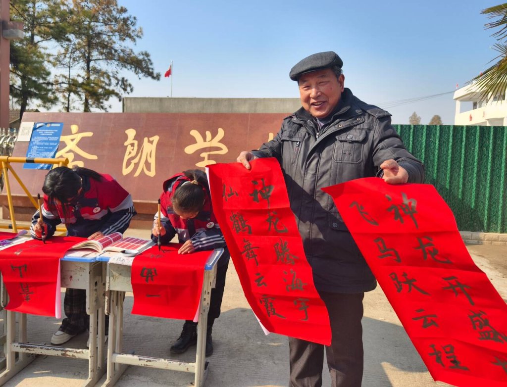 写春联、贴春联,是中国传统节日——春节的重要习俗,不仅能增添节日的喜庆气氛,表达人们对美好生活的殷殷期盼,更是对中华传统文化如约而至的传承和弘扬。龙年春节来临之际,定远县斋朗学校于1月27日开展春节送春联主题活动,为群众免费书写春联和福字,营造新春佳节浓厚的节日氛围。