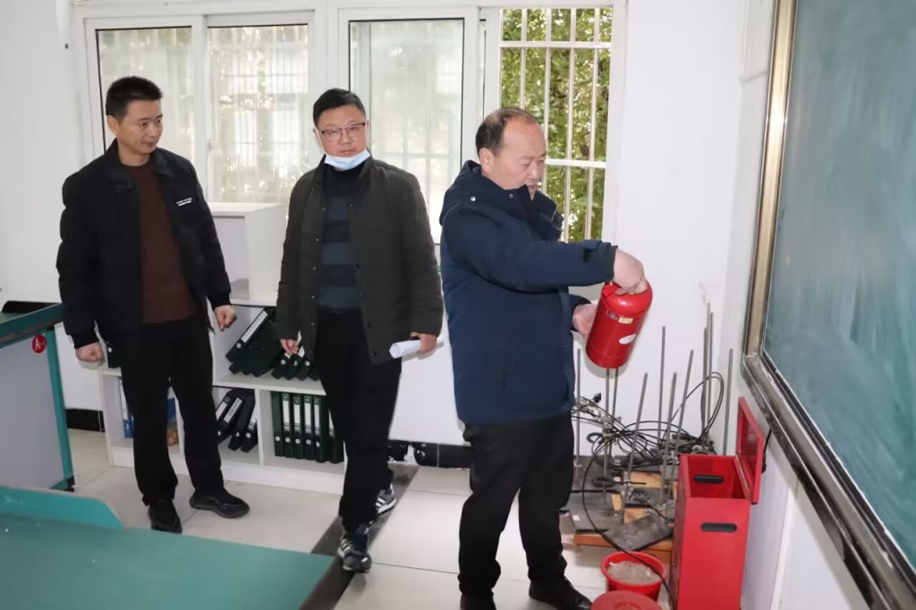 ~ 相关人员在张锦东校长的带领下分别对教学楼、学生公寓、餐厅等重点部位和学校水电、监控、教学设施、消防安全等设施设备进行全面、认真、细致检查,做到了不漏一处隐患,不留一处死角。对排查出来的安全隐患建立台账,明确专人负责、利用假期全面进行整改,确保春季开学隐患全部归零。